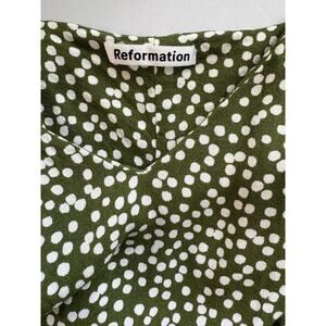 Great condition Reformation Marlowe Dress in Moiret. Moiret is a green and white polka dot print.