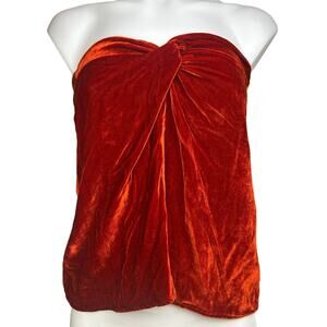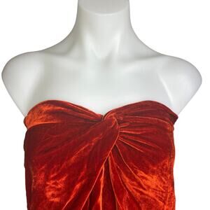 Reformation Women's Orange Velour Velvet Twist Front Strapless Tube Top Size 2