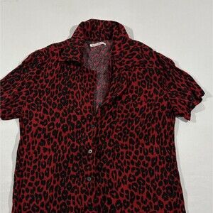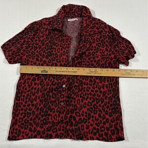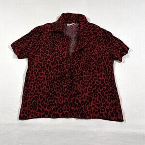Reformation Womens Red Animal Cheetah Print Short Sleeve Top Shirt Blouse Sz M