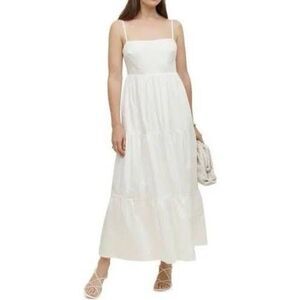 Reformation Women's White East Square Neck Open Back Tiered Maxi Dress Small