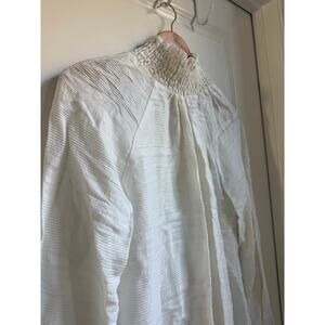 Reformation Womens White Smocked Turtle Neck Long Sleeve Blouse