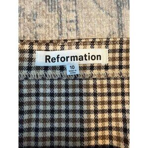 Reformation Women's Wool Blend Brown Check Mini Skirt Size 10 Preppy Academic