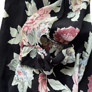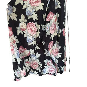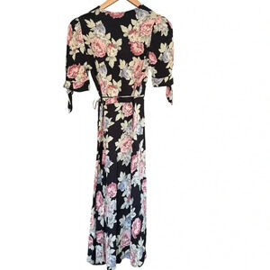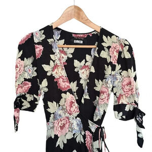 Freformation Women's Wrap Midi Dress in Black Floral Royce in Brookvale Print Size Sm - Ties on the Sleeves - Excellent Condition