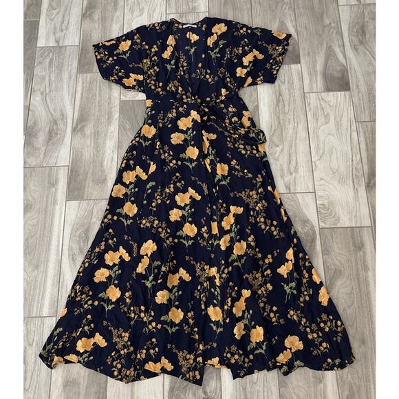 Reformation Women’s XL Winslow Floral Wrap Maxi Dress Viscose Navy Blue Kimono
