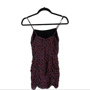 Reformation Wyatt Dress in Mabel Floral. This is a tight fitting, mini length dress with ruched fabric and adjustable straps.