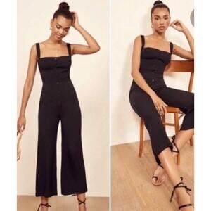 REFORMATION Black Della Front Button Straight Leg Jumpsuit