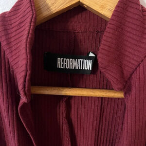 Reformation XS Womens Red Ribbed Knit High Neck Dress