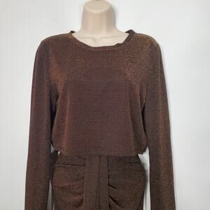 Reformation Zion Two Piece Set Long Sleeve Midi Skirt Metallic Shimmer Size XL