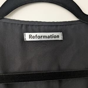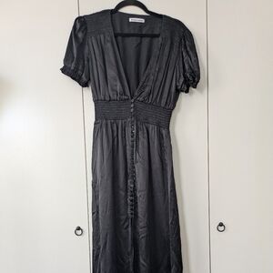 reformation alexea 100% silk midi dress in black, NWT and orig $400. size 8 but stretchy due to the smocked waist and can accommodate larger and smaller.