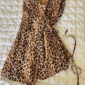 Stylish leopard print wrap dress. Features a flattering tie waist.