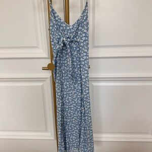 Reformation blue and white floral midi dress with tie. Tie can be worn in back or front. Worn once no defects.