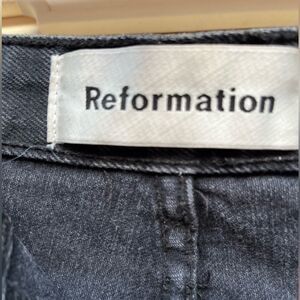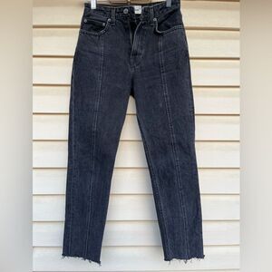 Reformation, distressed, black denim ankle pants, zipper closure, pockets, 25