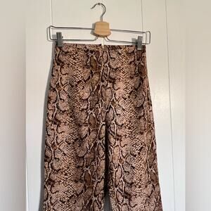 Neutral colored snake print pattern. Ultra high rise. Zips at the back. Cropped with a loose leg. Super sexy showstopper in like new without tags, never used condition. 12 inch rise. 25.5 inch inseam. Style name is “Marlon.” Works for a variety of seasons. Fits like a 0/2.