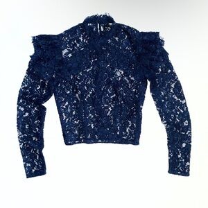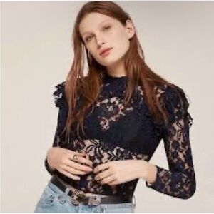 Reformation lace Long Sleeve top blouse in Navy