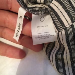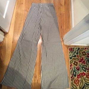 Reformation - like new, XS, linen dark blue and white stripped linen long light weight flowing flared pants. I'm 5'8" and they are about 2 inches long so perfect with heels, fit true to reformation sizing, invisible zipper up the back.