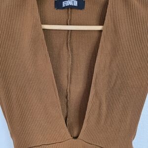 Reformation one piece deep V bodysuit, chocolate brown, size small