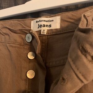 Cowboy Straight pants from Reformation in a pale brown. Retailed for $148-198. No longer available.