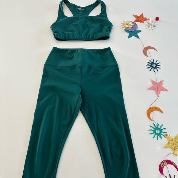 Perfect color for fall or holidays. EcoMove is a sleek performance fabric with a slight sheen for mid to high-impact activities. Matching sports bra and leggings.