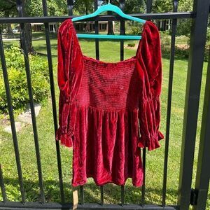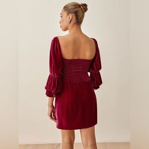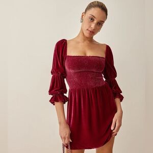 Stunning reformation albi crimson velvet dress. Never been worn, with tags attached. Double puff sleeves give a very romantic feel! Smocked bodice. Perfect for the holiday season!