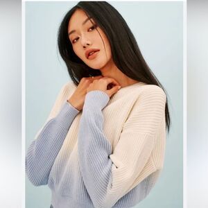Reformation Blue and Cream ombré Crew Neck Sweater, XS
