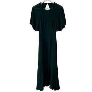 Wear the dress. The Carletta is an ankle length dress with a crew neckline and an open back. It features flutter details throughout the sleeves and an asymmetrical hemline. The dress is fitted in the bodice with a relaxed fitting skirt, so you get structure and comfort all in one.