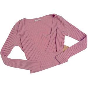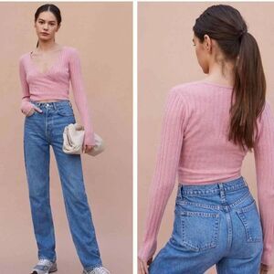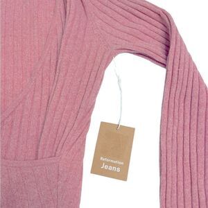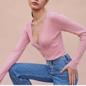 Reformation Cashmere Ribbed Faux Wrap Cropped Sweater