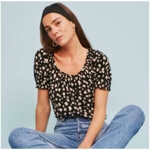 Reformation Cheyanne Hayley Black Floral Short Sleeve Blouse Top sz S
