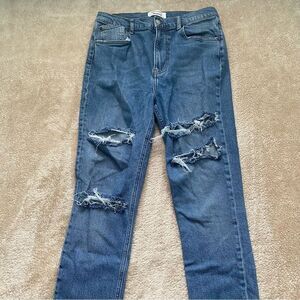 Reformation Jeans Blue Distressed High and Skinny Crop Jeans in Syracuse