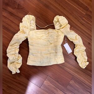 Elevate your style with this vibrant yellow Joi blouse from Reformation, featuring elegant puff sleeves and zipper back, excellent condition new with tags, size 4. NWT