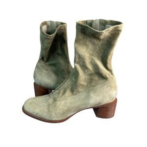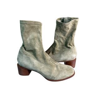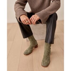 Reformation Louie Sage Suede Sock Bootie Size 7 Square Toe Block Heel Ankle Boot