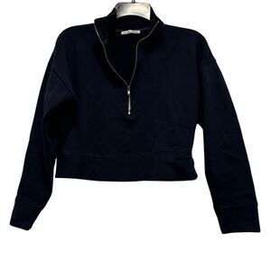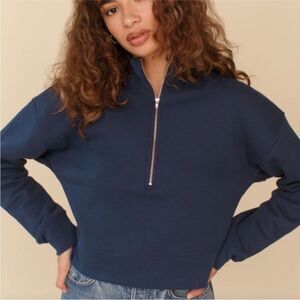Reformation Marla Half Zip Cropped Sweatshirt in Navy