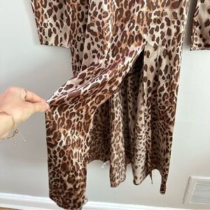 Stunning leopard-print silk makes an elegant statement on this midi dress that's perfect for your next night out.
