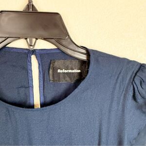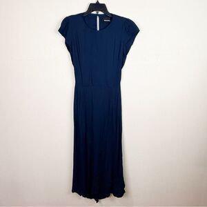Reformation Navy Cap Sleeve Open Back Midi Slit Dress Gavin Size 8