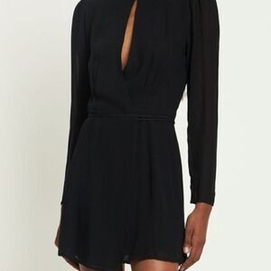 Reformation's Ottessa minidress is cut in a surplice design and features long sheer sleeves, a side-tie closure and chest cut out.