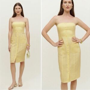 Reformation Prescott Linen Midi Strapless Dress Zest Yellow NWT 12
