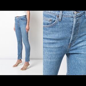 Reformation has swiftly gained a loyal following for its sustainable practices and pretty designs. Case in point: these Maya blue cotton-blend Serena skinny-fit jeans. Featuring a high rise, a waistband with belt loops, a button & zip fastening, a five pocket design and a cropped length.