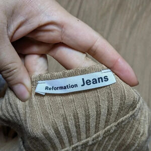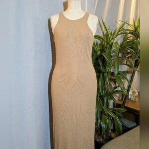 Reformation Tan Brown Dress Maje Ribbed Knit Midi Sleeveless Medium