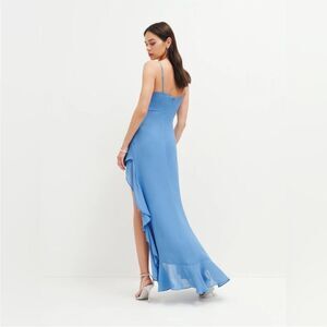 Reformation Winola Ruffle Side Slit Maxi Dress in Azure Blue Size XL NWT $378