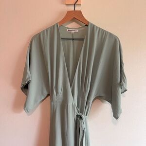 Reformation Winslow Midi Dress in Celadon Sage Green. Elevate your wardrobe with the Reformation Winslow Midi Dress – the perfect blend of effortless elegance and modern romance. Crafted from lightweight, eco-friendly fabric, this flattering midi features a deep V-neckline, flutter sleeves, and a fitted bodice that flows into a floaty, swingy skirt. Whether you’re headed to a summer wedding, brunch, or a weekend getaway, the Winslow is designed to move with you and turn heads. Minimal wear, in excellent condition – a timeless piece you’ll reach for again and again. No holes, rips, or stains. Ours is a smoke free home.