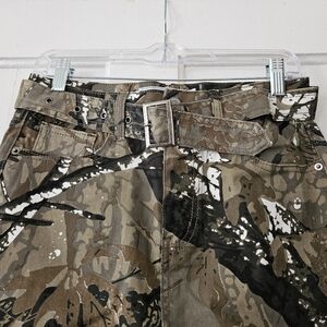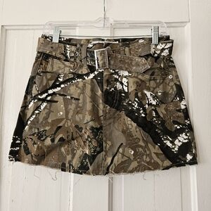 Refrain Camo Mini Skirt Junior's Size 5, Raw Hem, Belt