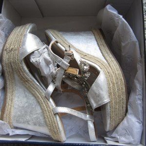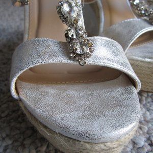 Details: Gem trim on foot strap, espadrille trim on wedge