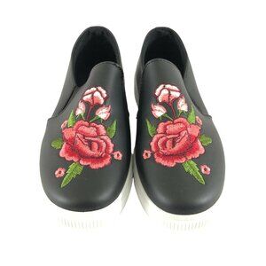 Refresh Womens Slip On Sneakers Embroidered Floral Faux Leather Black Size 6.5