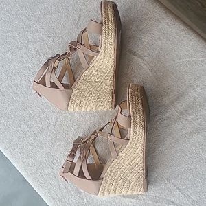 Nude and gold platform wedges. Worn once.
