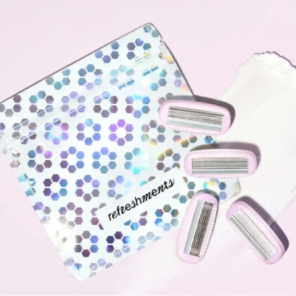 Set of razor blade refills with a stylish holographic pouch. Perfect for a smooth shave.