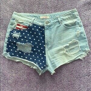 Refuge American Flag Distressed Jean Shorts 8 USA 4th of July Memorial Day Stars