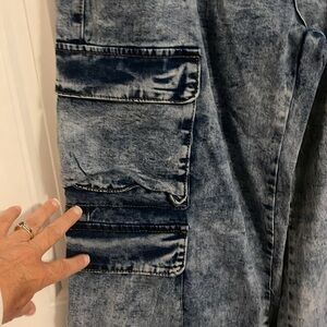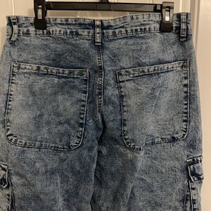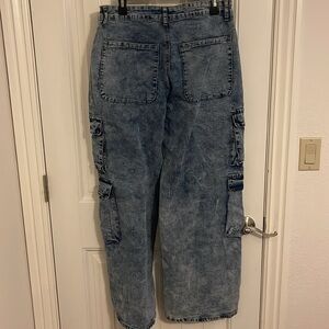 Baggy women’s size large refuge, denim jeans for oversized cargo pockets on front legs +2 waist pockets extra wide 12 inch legs, oversized back pockets new with tags
