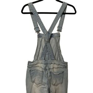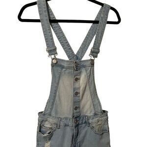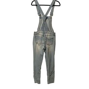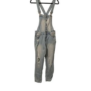 Intentional distressed skinny overalls •Waist: 15” •Rise: 9” •Inseam: 28” No sign of wear. Excellent condition