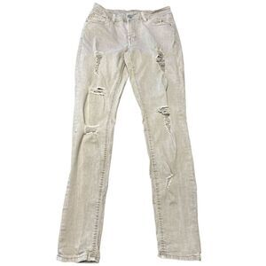 Refuge Distressed Gray Skinny Stretch 5 Pocket Button Zip Jeans Size 4.