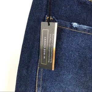 Refuge Hi Rise Cheeky Distressed Destroyed Dark Wash Denim Jean Shorts