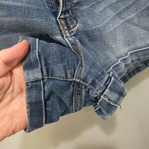Casual and versatile Refuge denim shorts in women’s size 4. Medium blue wash with a flattering high-rise button fly and rolled hem for a classic look. Perfect for everyday summer wear, festivals, or layering with tanks and tees.